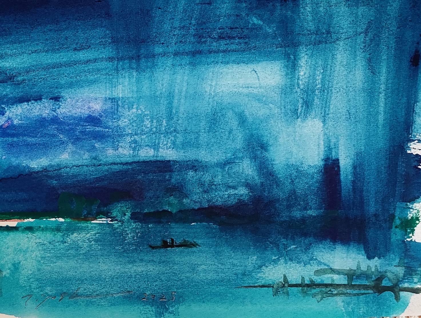 2012年1月15日水彩『厳冬の江戸川河川敷』