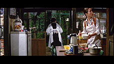 さくら、紫の頭巾をかぶりながら、提灯を持ち鞍馬天狗に近寄る。