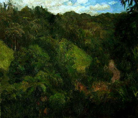 雨季もすっかり終わり、ここ一週間は自宅の敷地から久しぶりに渓谷を描いてみた。一ヶ月ぶりに描く渓谷は新鮮で、2度ほど