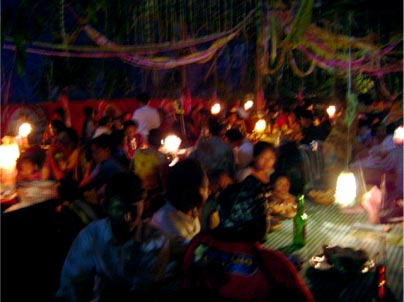 でも、おもしろいもので、夜でも30度をちょっと越す灼熱のなまぬるい風に吹かれながら、歩道で営業している屋台で食べて