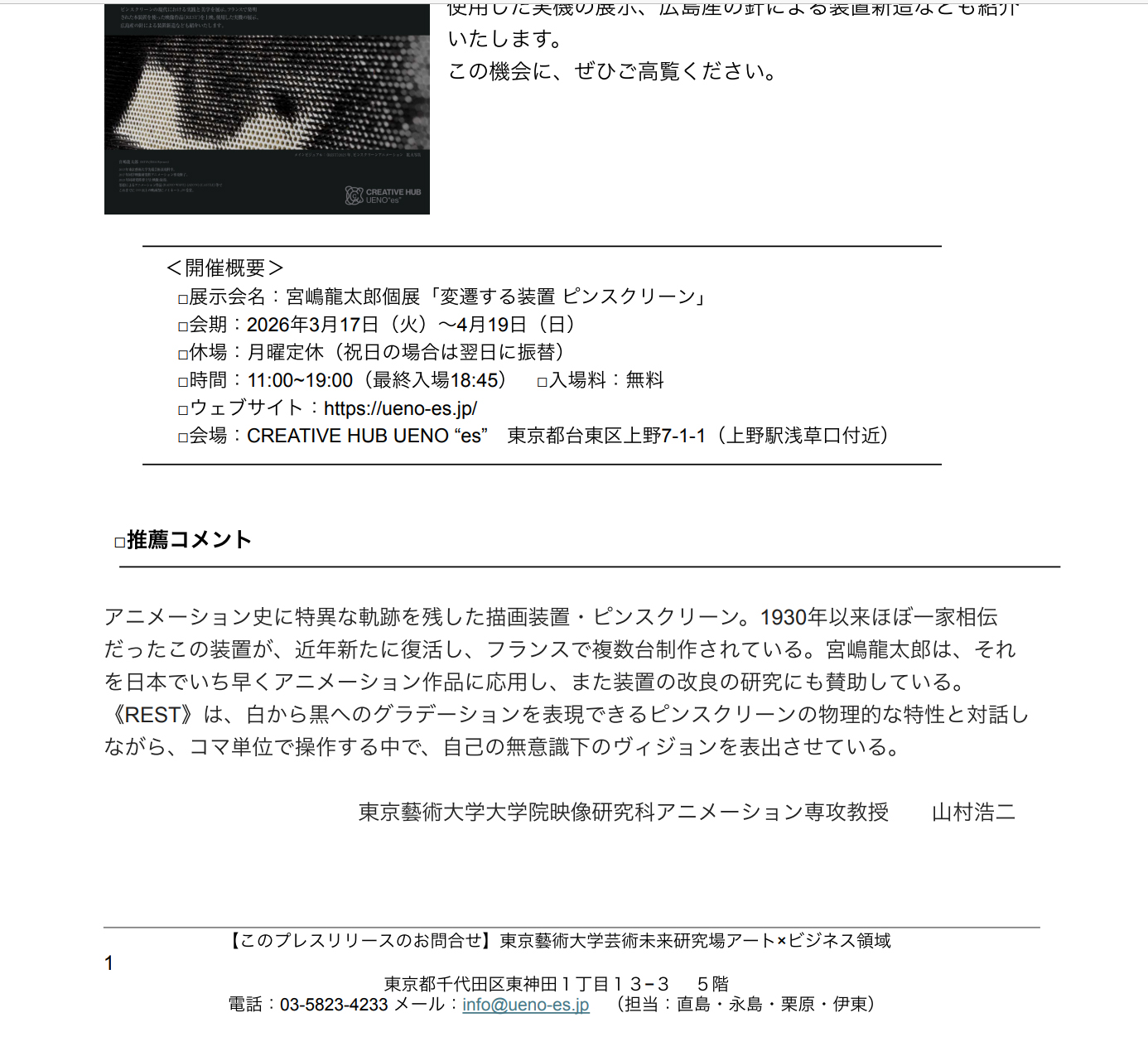 ・「REST」が2026年 アヌシー 国際アニメーション映画祭のコンペディションにて「perspective部門」にセレクトされ、賞候補としてノミネートされる。