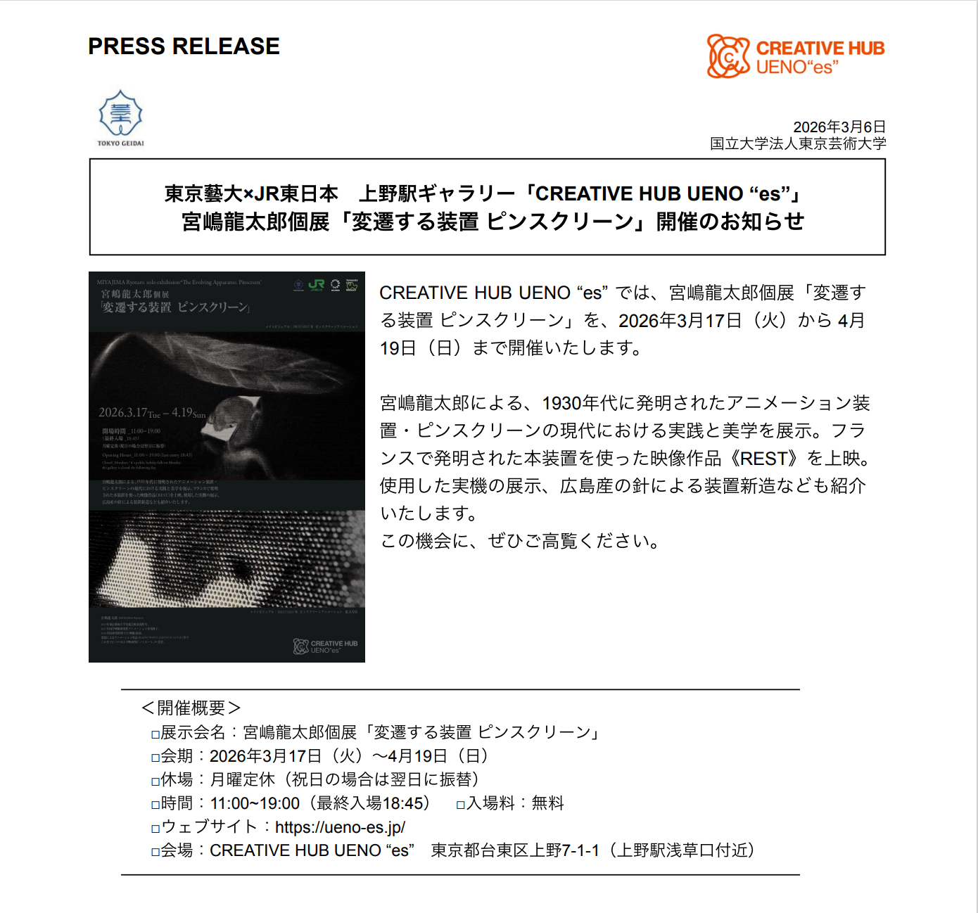 2020年 4月 東京藝術大学大学院映像研究科メディア映像学 博士課程(後期)に入学 (山村浩二教授教室)