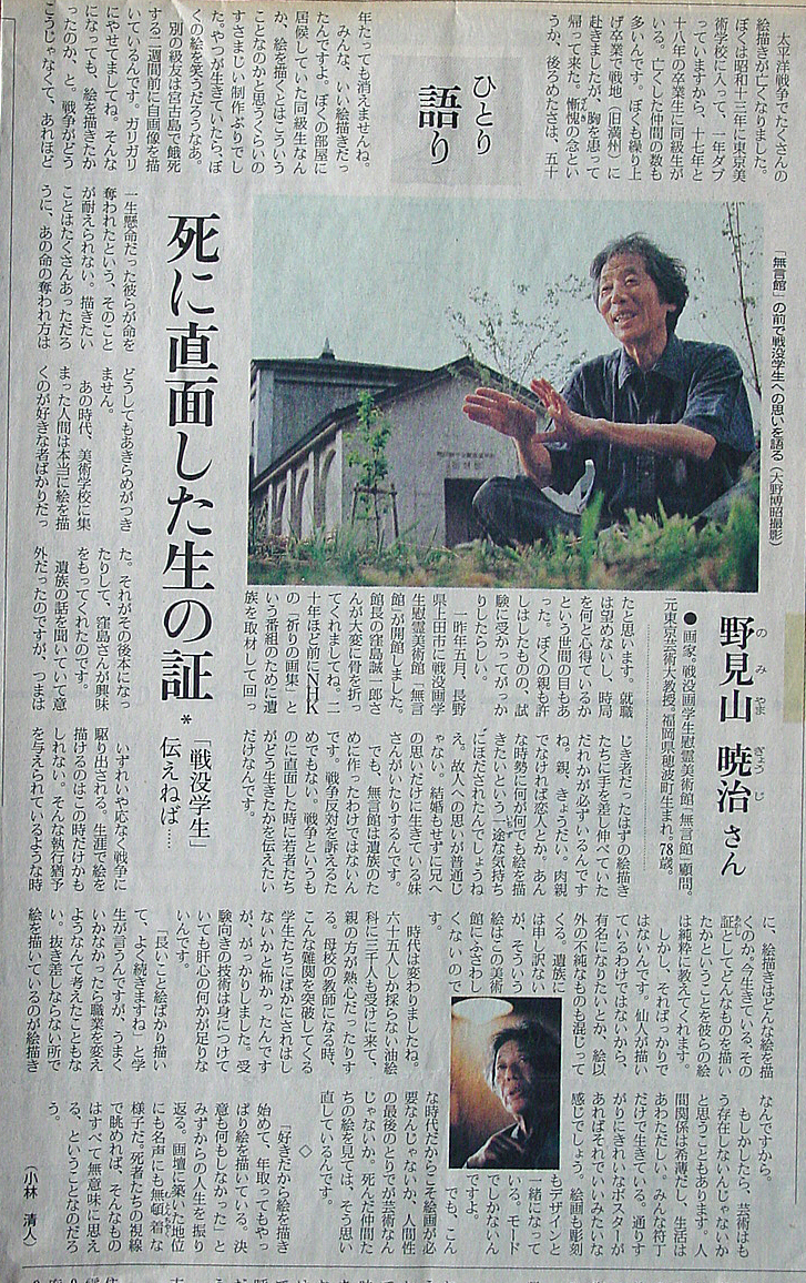 野見山さんの後悔とそれでも描いていく気概を強く印象付けられた20数年前の新聞記事を紹介しよう。